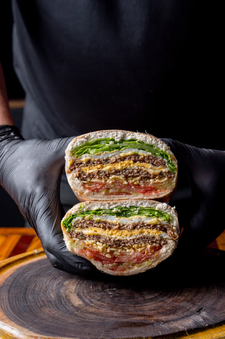 Pão De Hambúrguer, Tomate, Alface Ou Rúcula, Bacon, Batata Palha, 2 Queijos Prato, 2 Hambúrgueres (90g), 2 Ovos, Frango, Calabresa E Catupiry Original. Serve até duas pessoas.