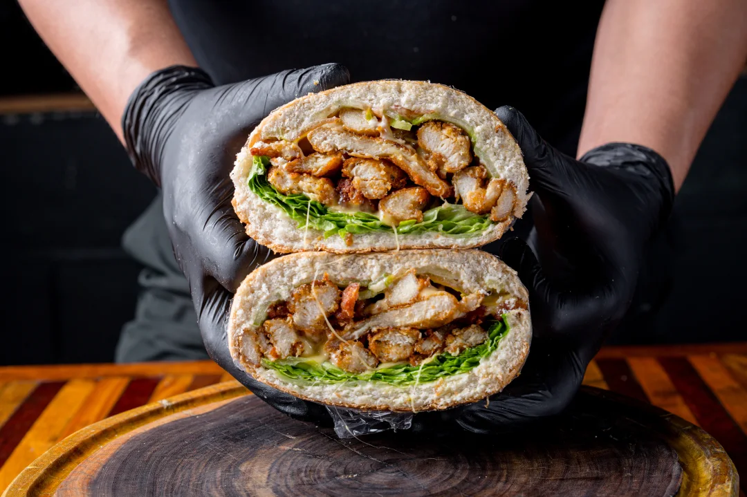 Pão De Hambúrguer, Tomate, Alface Ou Rúcula, 2 Queijos Prato, 400g De Frango Empanado E Maionese de Rúcula