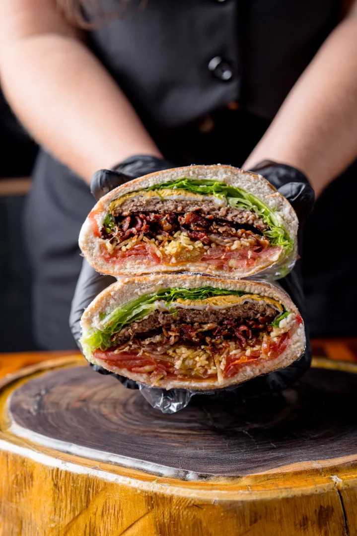 Pão De Hambúrguer, Tomate, Alface Ou Rúcula, Batata Palha, Queijo Prato, Hambúrguer (90g), Ovo e Bacon.