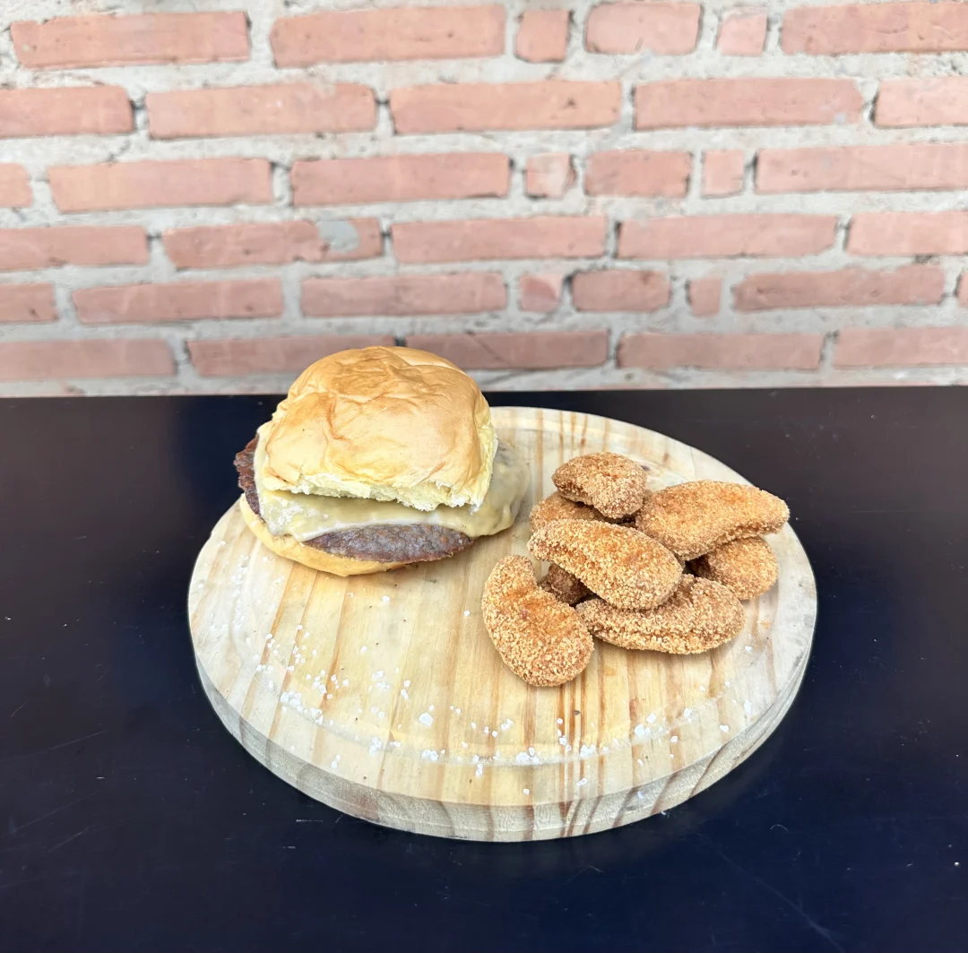 Pão Brioche, Hambúrguer, Queijo e Ketchup + 4 Nuggets + 1 Suco ou 1 Mini Coca - Acompanha Brinquedo
